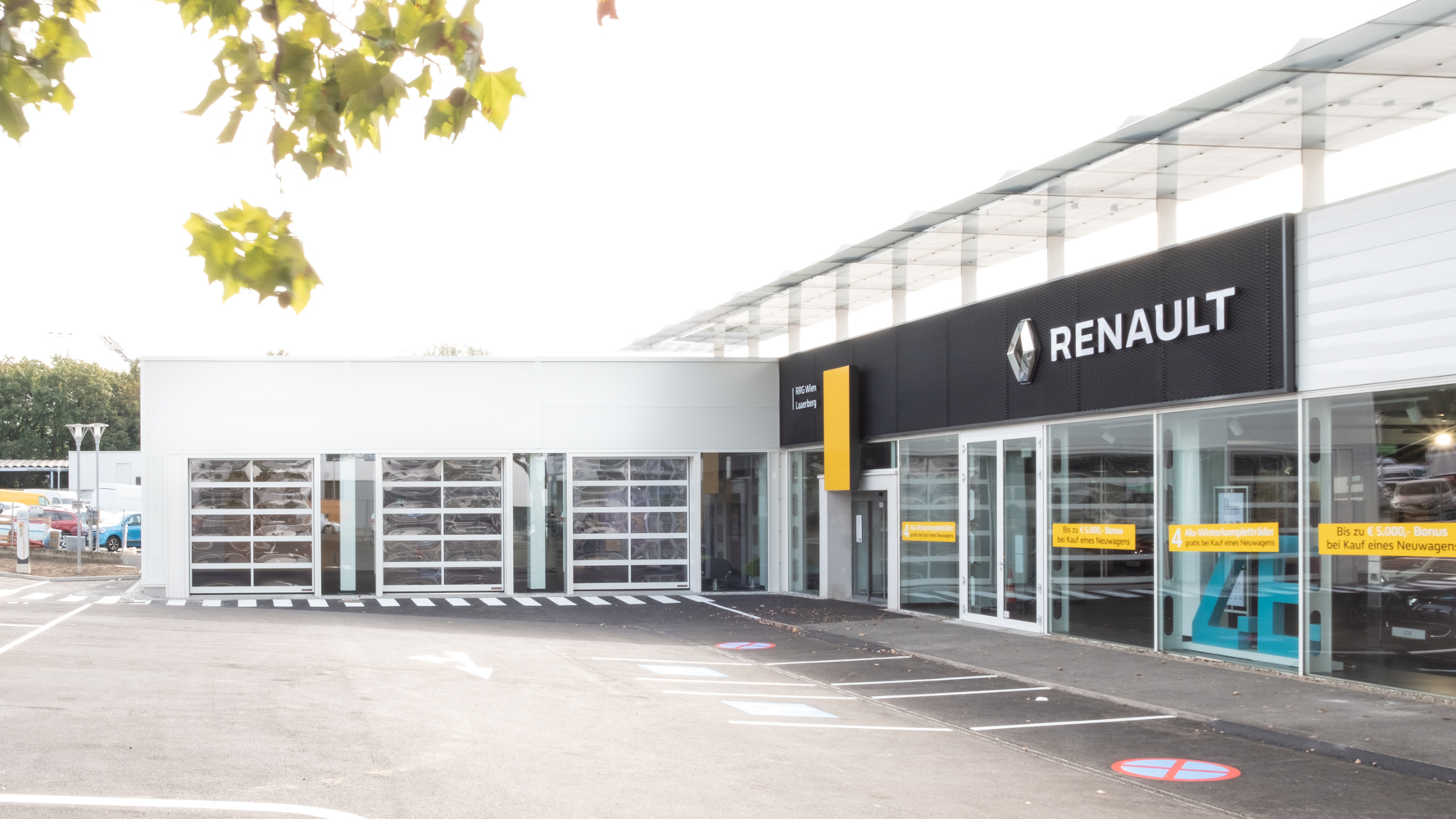 Schauräume Renault, Dacia, Alpine, Kunden-Lounge, Auslieferungshalle, Cafetaria, Außenanlagen
