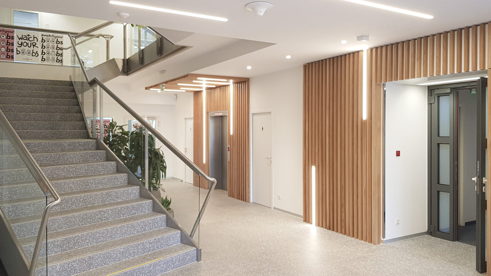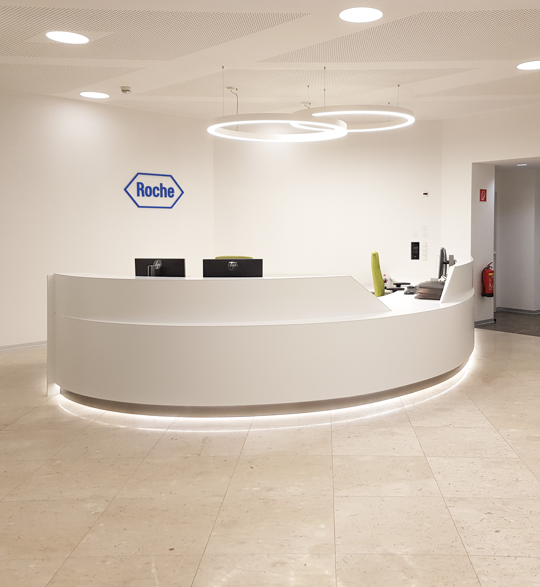 Für das internationale pharmazeutische Unternehmen Roche Austria sanierte EcoProjekt als Generalunternehmer dessen Standort in Wien. Die durchdachte Organisation des Interieur-Umbaus ermöglichte einen durchgehenden Betrieb des Unternehmens während des gesamten Umbaus. Auf dem Areal befinden sich drei Hauptgebäude mit über 300 Arbeitsplätzen. Aufgabe war, den bestehenden Objekten nach mehreren kleineren „Face-Lifts“ in den vorangegangenen Jahren, wieder einen einheitlichen Auftritt zu verschaffen. Für einen zeitgemäßen Empfang sorgen helle Farben mit bewusst gesetzten Highlights mittels Material- und Lichtgestaltung.
